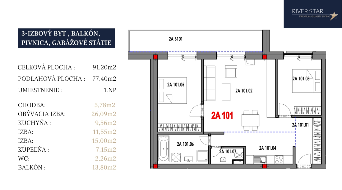 NázovPočet iziebPodlažieVýmera celkomBalkón / TerasaÚžitková plochaParkovacie státieCena za byt Celková cena za byt + parkovacie státie + pivnica
