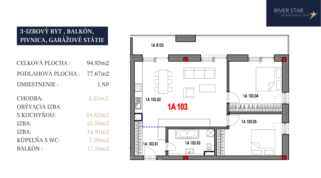 NázovPočet iziebPodlažieVýmera celkomBalkón / TerasaÚžitková plochaParkovacie státieCena za byt Celková cena za byt + parkovacie státie + pivnica