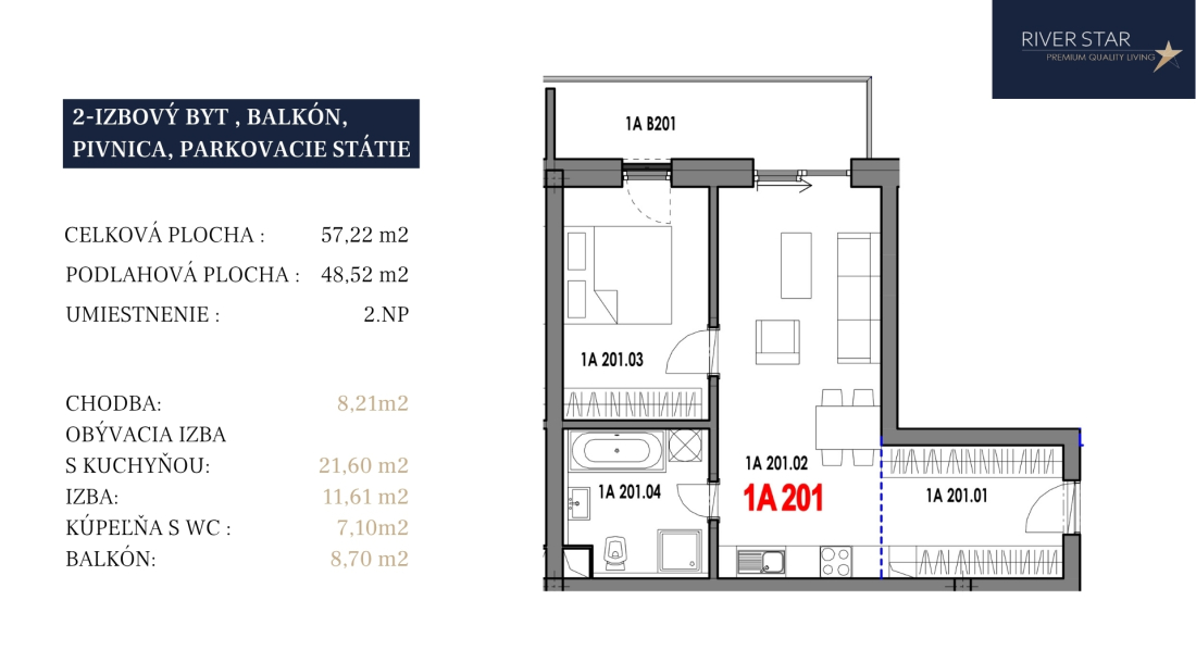 1A2012257,218,7048,51Vonkajšie státie + pivnica112 500 €122 500 €