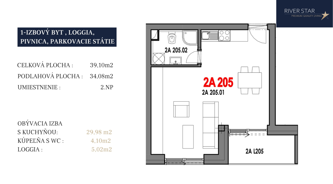 2A205garsónka239,15,0234,08Vonkajšie státie + pivnica79 300 €89 300 €