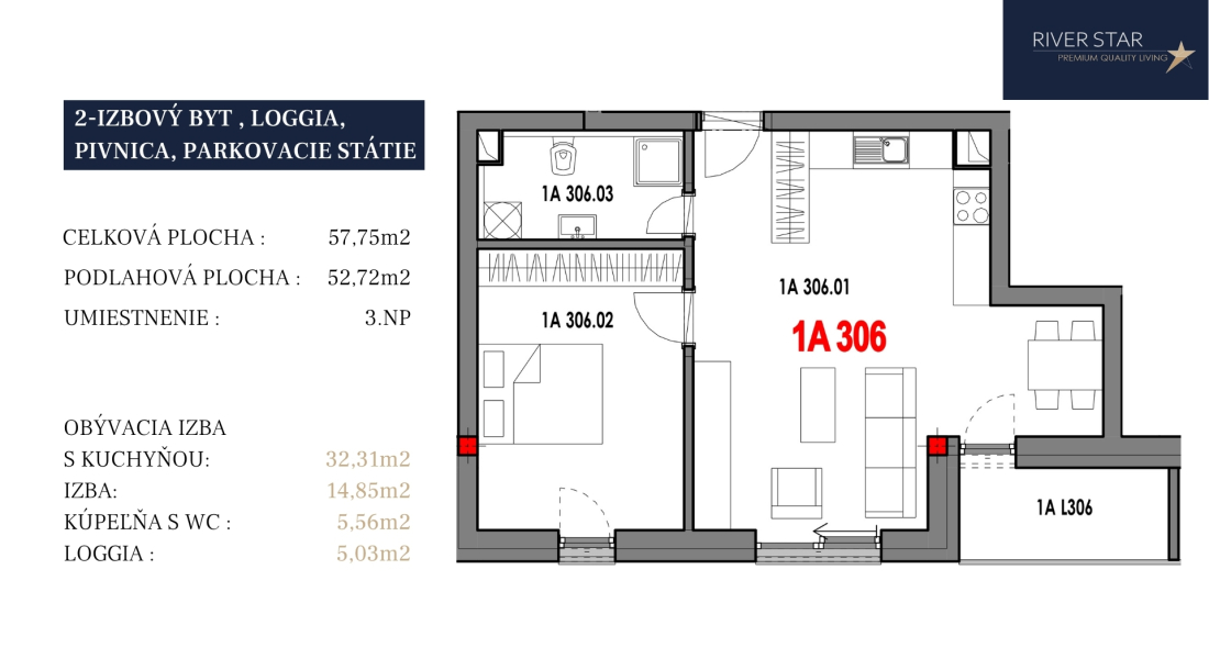 1A3062357,755,0352,72Vonkajšie státie + pivnica122 100 €132 100 €