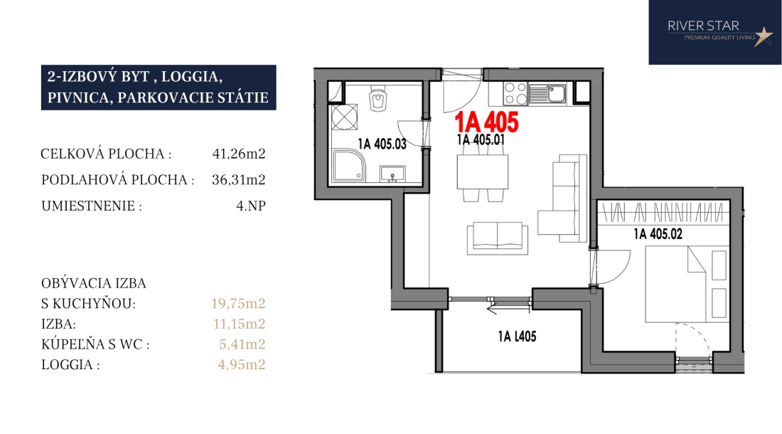 1A4052441,264,9536,31Vonkajšie státie + pivnicaRezervované