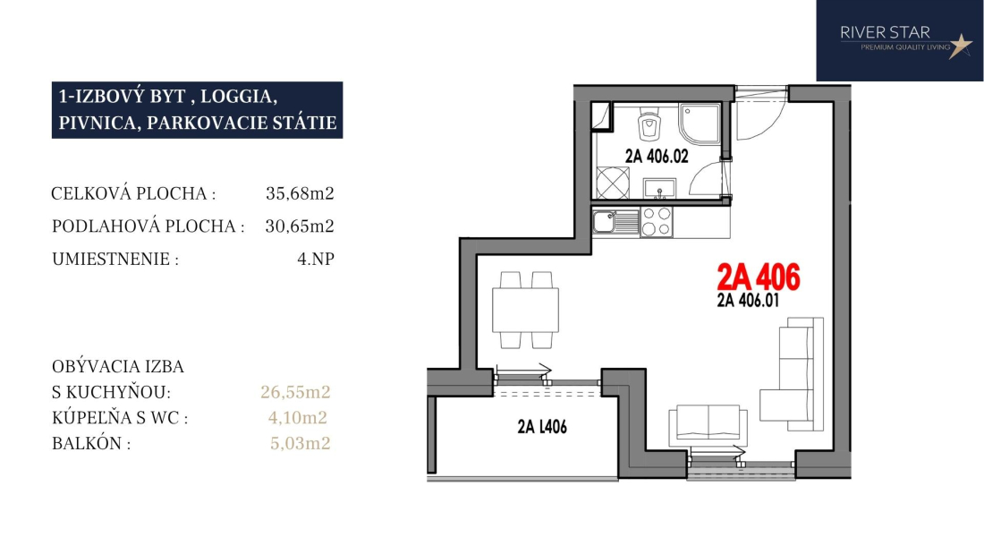 2A406garsónka435,685,0330,65Vonkajšie státie + pivnicaRezervované