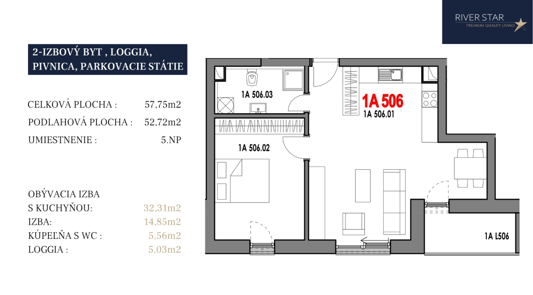 1A5062557,755,0352,72Vonkajšie státie + pivnica122 100 €132 100 €