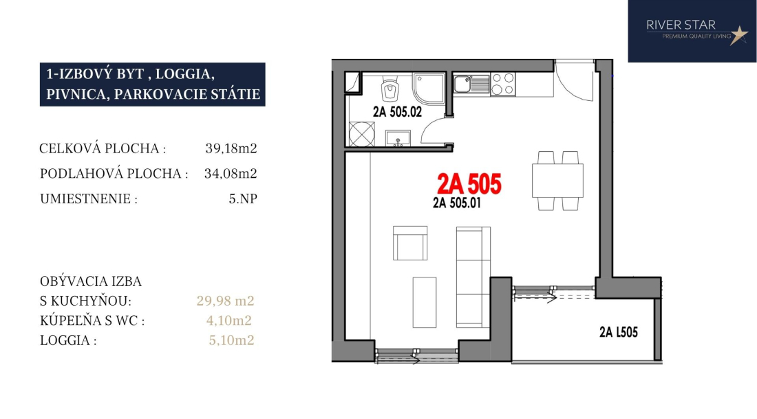 2A505garsónka539,185,1034,08Vonkajšie státie + pivnica79 300 €89 300 €